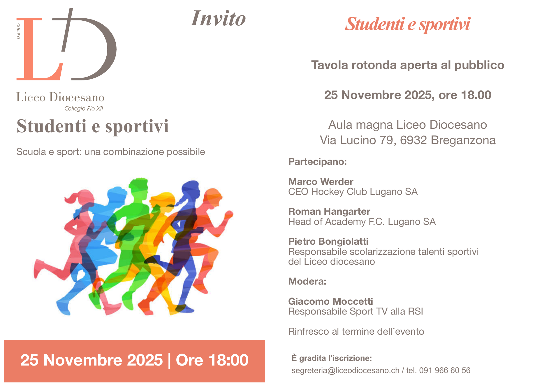 È gradita l’iscrizione: segreteria@liceodiocesano.ch / 091 966 60 56